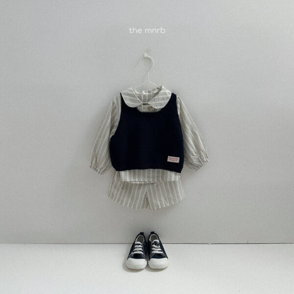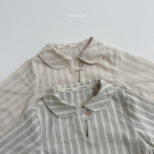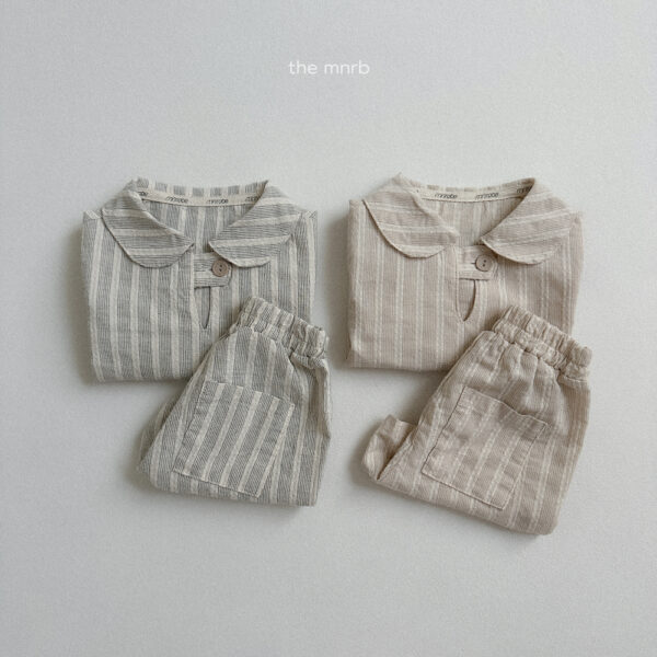 日系清新棉麻條紋套裝